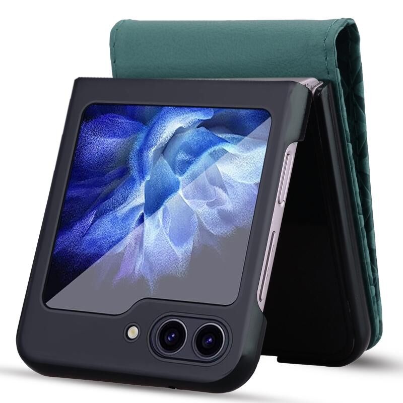 Για Samsung Galaxy Z Flip6 Diamond Πόρπη Δερμάτινη θήκη τηλεφώνου με κορδόνι (πράσινο)