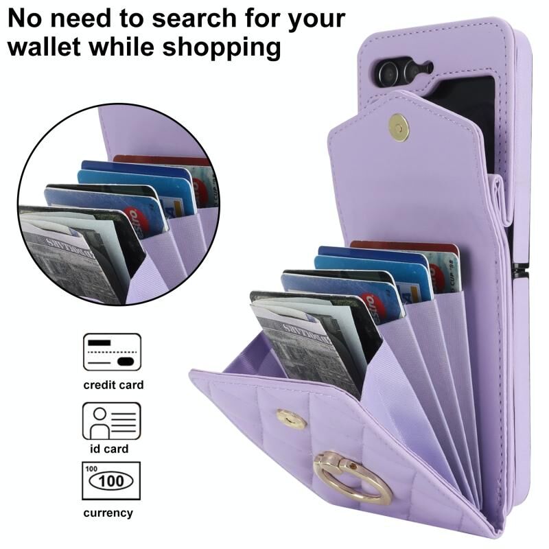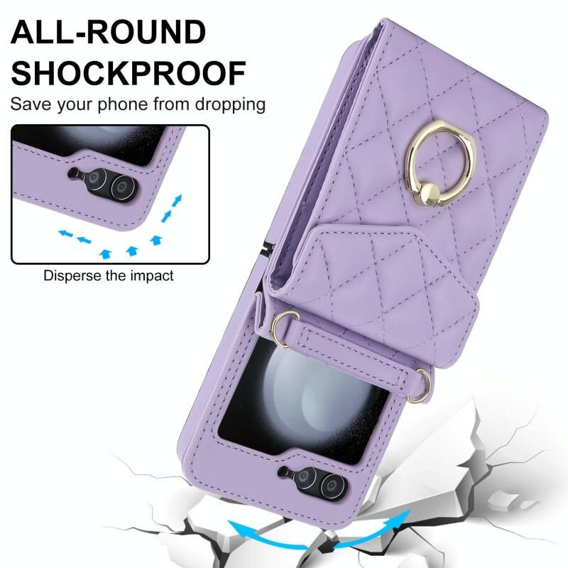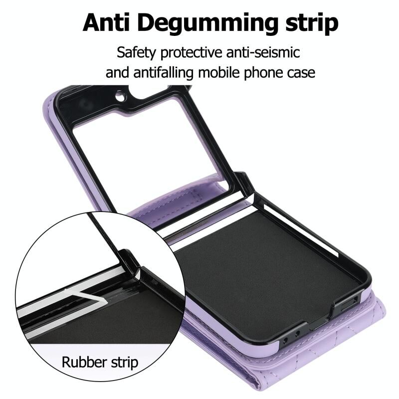 Για Samsung Galaxy Z Flip6 Diamond Lattice RFID κάρτα Slot υπόθεση τηλεφώνου με θήκη δαχτυλίδι (μωβ)