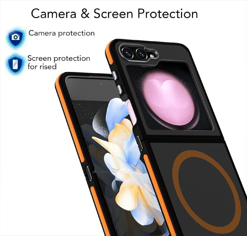 Θήκη τηλεφώνου πλήρους κάλυψης MagSafe με αίσθηση διχρωμίας για Samsung Galaxy Z Flip6 (Μαύρο)