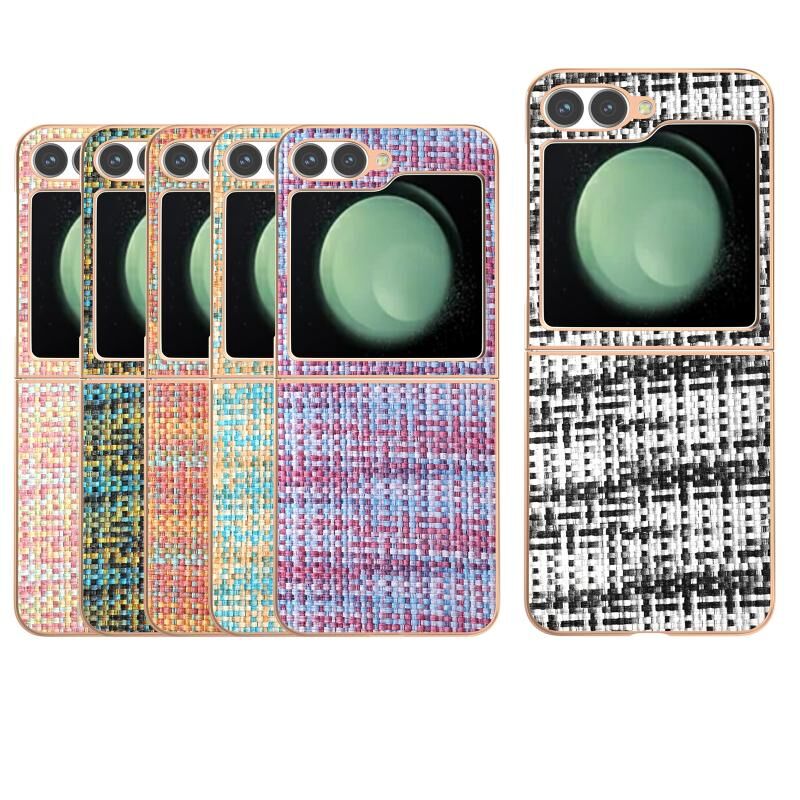 Για Samsung Galaxy Z Flip6 Electroplated πλαίσιο χρώμα πλέγμα υφή PU τηλέφωνο υπόθεση (μωβ)