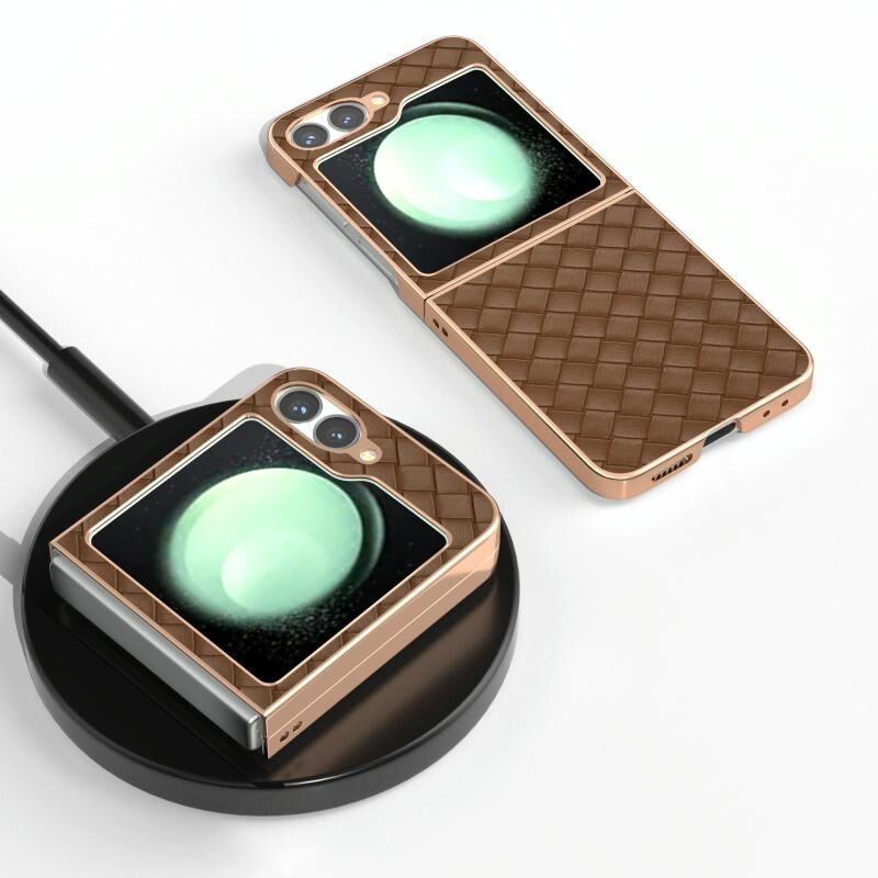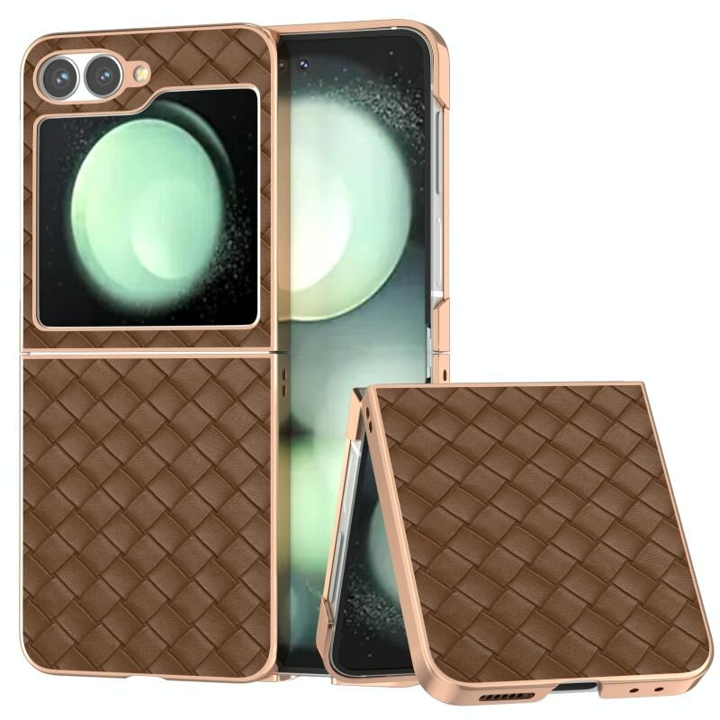Για Samsung Galaxy Z Flip6 Electroplated πλαίσιο υφασμένα υφή PU υπόθεση τηλεφώνου (καφέ)