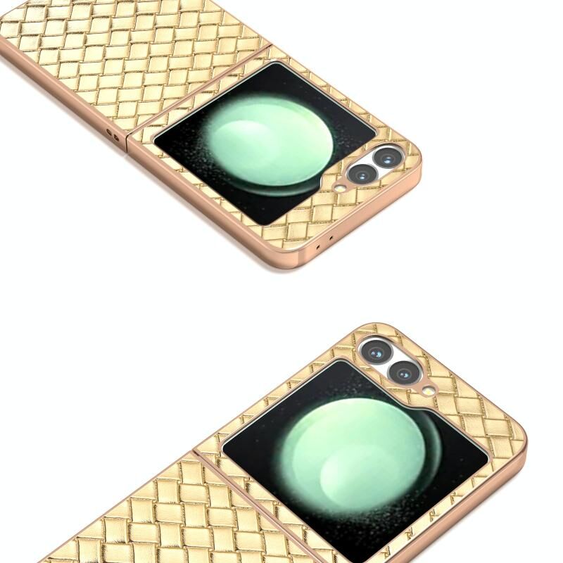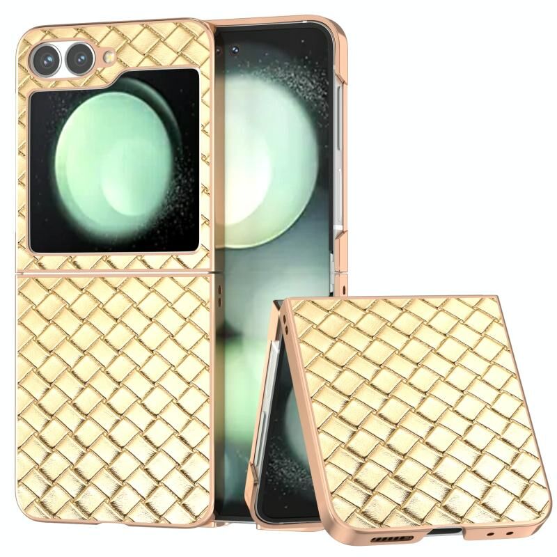 Για Samsung Galaxy Z Flip6 Electroplated πλαίσιο υφασμένα υφή PU υπόθεση τηλεφώνου (χρυσό)