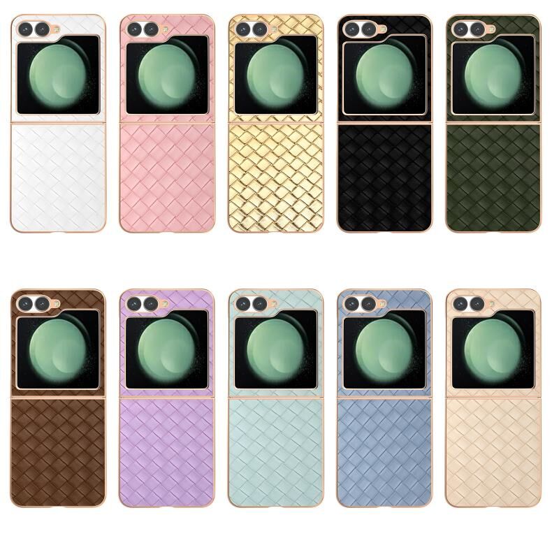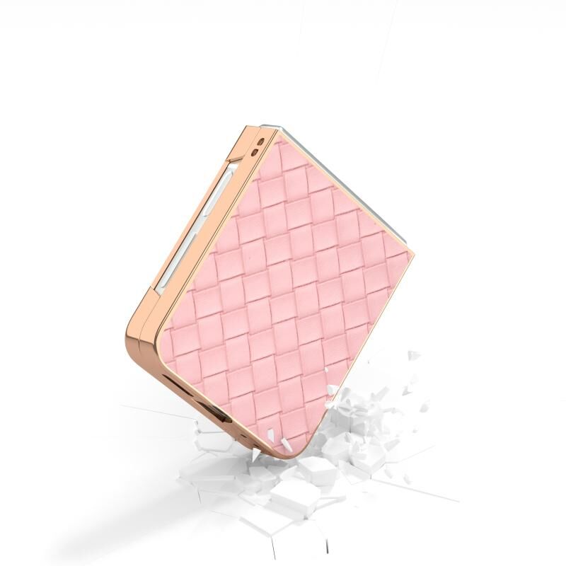 Για Samsung Galaxy Z Flip6 Electroplated πλαίσιο υφασμένα υφή PU υπόθεση τηλεφώνου (ροζ)