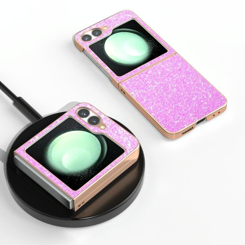 For Samsung Galaxy Z Flip6 Electroplating Frame Colorful Glitter Phone Case(Dark Pink)