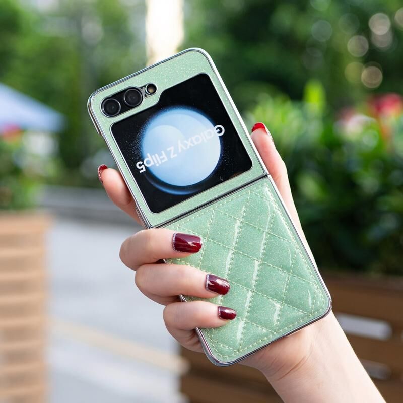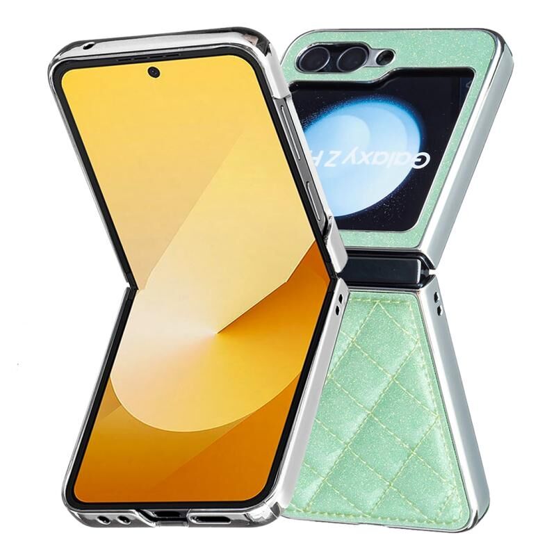 Για Samsung Galaxy Z Flip6 Ηλεκτρολυτική επιμετάλλωση ρομβοειδής Glitter PU υπόθεση τηλεφώνου (πράσινο)