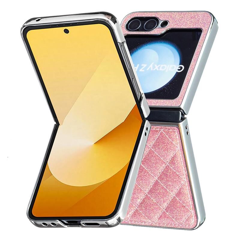 Για Samsung Galaxy Z Flip6 Ηλεκτρολυτική επιμετάλλωση ρομβοειδής Glitter PU υπόθεση τηλεφώνου (Rose Red)