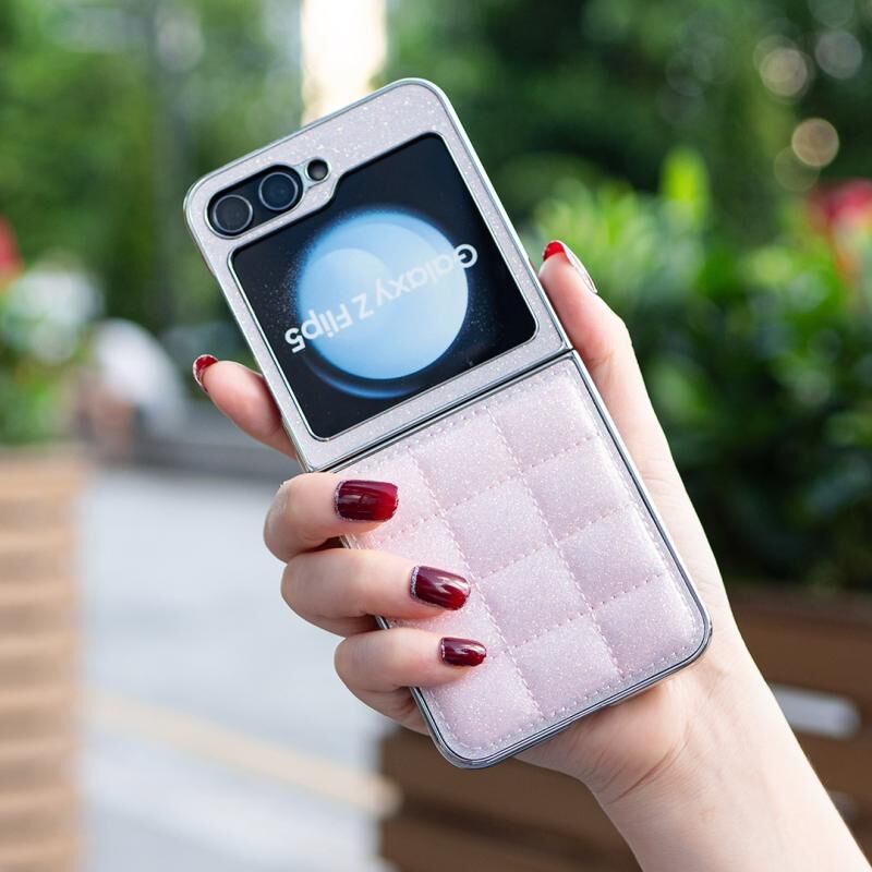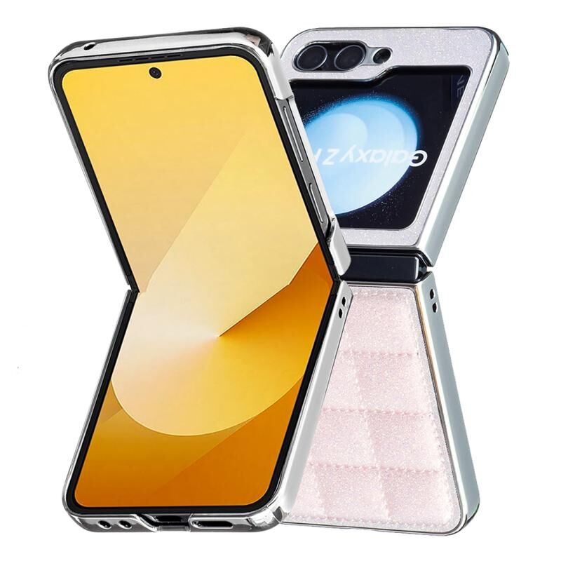 Για Samsung Galaxy Z Flip6 Electroplating τετράγωνο Glitter PU υπόθεση τηλεφώνου (ροζ)