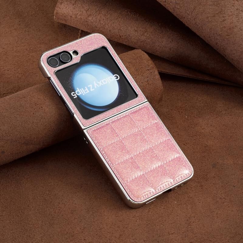 Για Samsung Galaxy Z Flip6 Electroplating τετράγωνο Glitter PU υπόθεση τηλεφώνου (Rose Red)