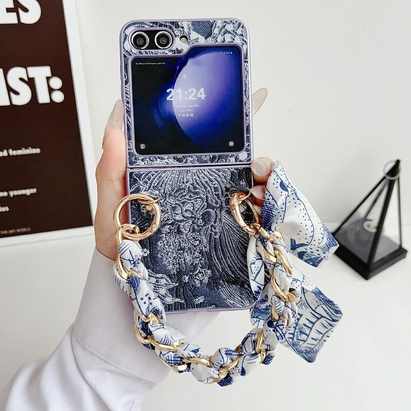 Για Samsung Galaxy Z Flip6 Κεντητική στυλ DIY πλήρους κάλυψης τηλέφωνο υπόθεση με κασκόλ / βραχιόλι (μπλε)