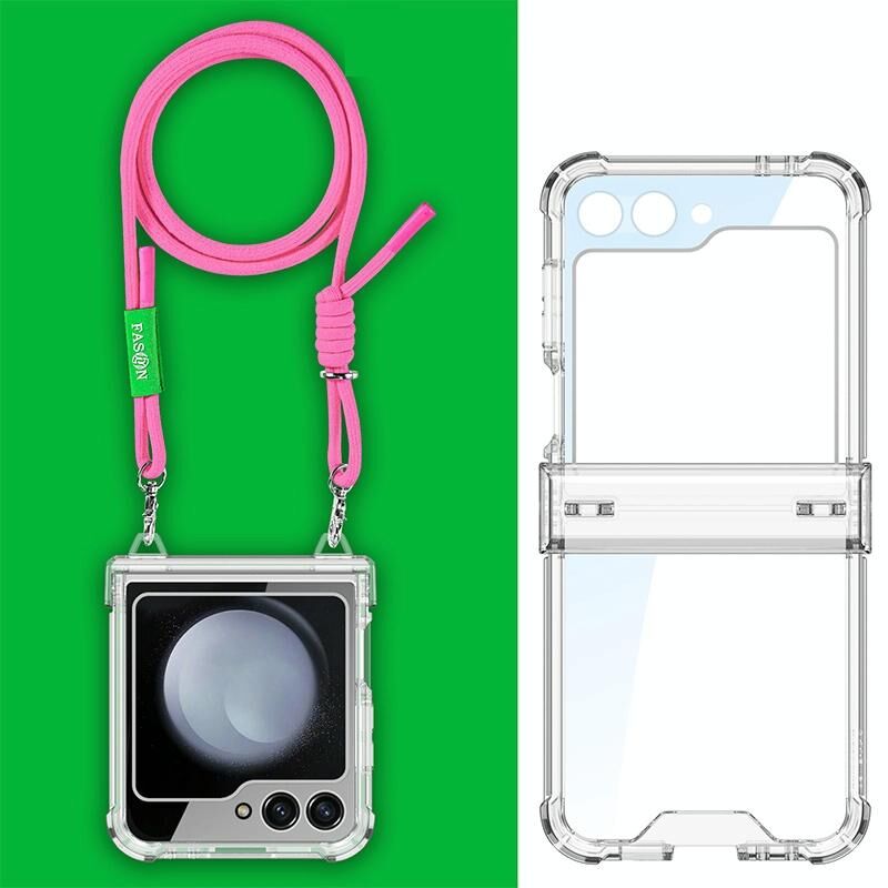 Για Samsung Galaxy Z Flip6 GKK Airbag μεντεσέ πλήρους κάλυψης υπόθεση τηλεφώνου με σχοινί Crossbody (ροζ) (GKK)