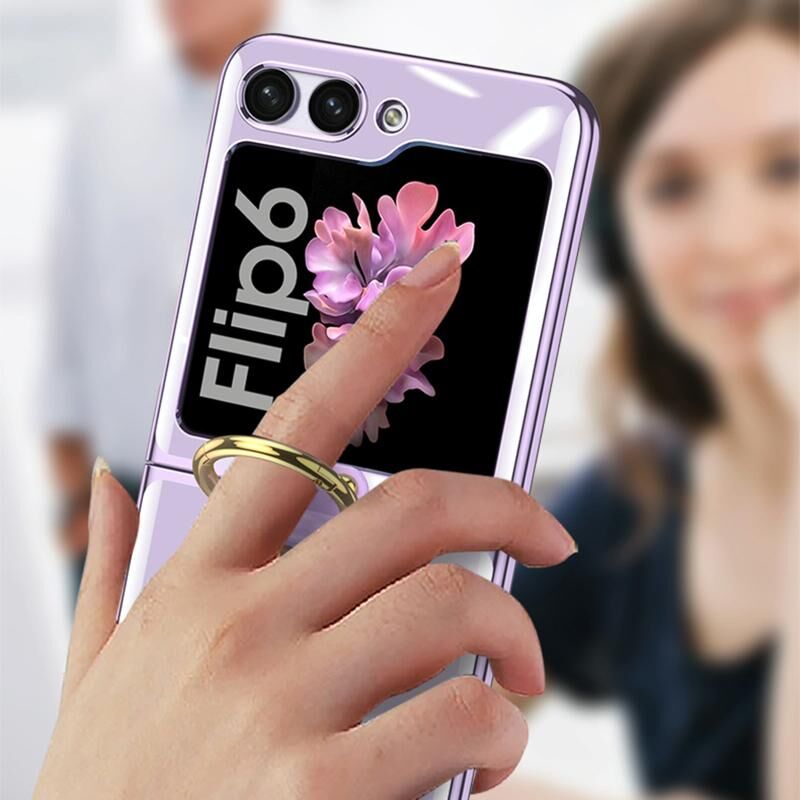 Για Samsung Galaxy Z Flip6 GKK θήκη τηλεφώνου με ηλεκτρολυτική επίστρωση και δαχτυλίδι (μωβ) (GKK)