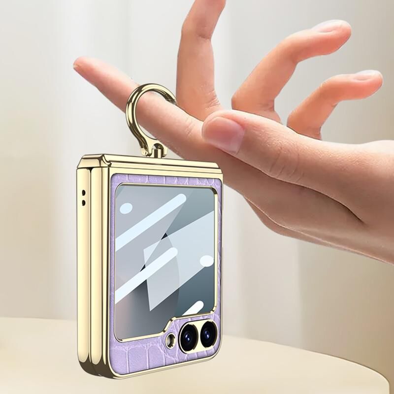 Για το Samsung Galaxy Z Flip6 GKK Ολοκληρωμένη θήκη τηλεφώνου από δέρμα με υφή κροκόδειλου και δαχτυλίδι (υφή Python) (GKK)