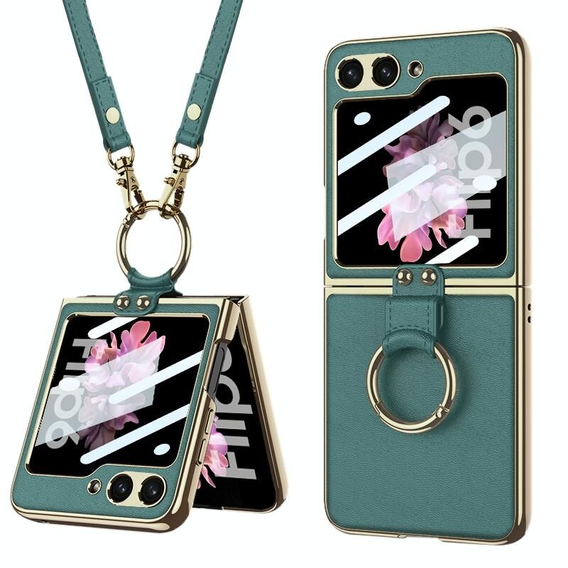 Για το Samsung Galaxy Z Flip6 GKK Ολοκληρωμένη θήκη τηλεφώνου από δέρμα με ηλεκτρολυτική επένδυση και δαχτυλίδι / λουράκι (πράσινο) (GKK)