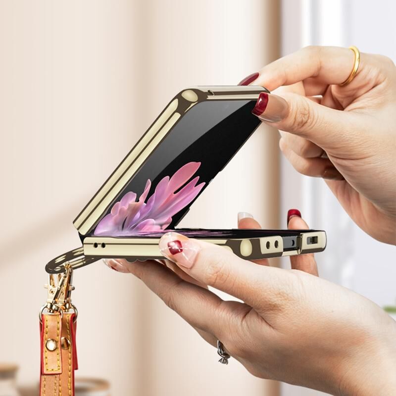 Για το Samsung Galaxy Z Flip6 GKK Ολοκληρωμένη θήκη τηλεφώνου από δέρμα με ηλεκτρολυτική επένδυση και δαχτυλίδι / λουράκι (μωβ) (GKK)