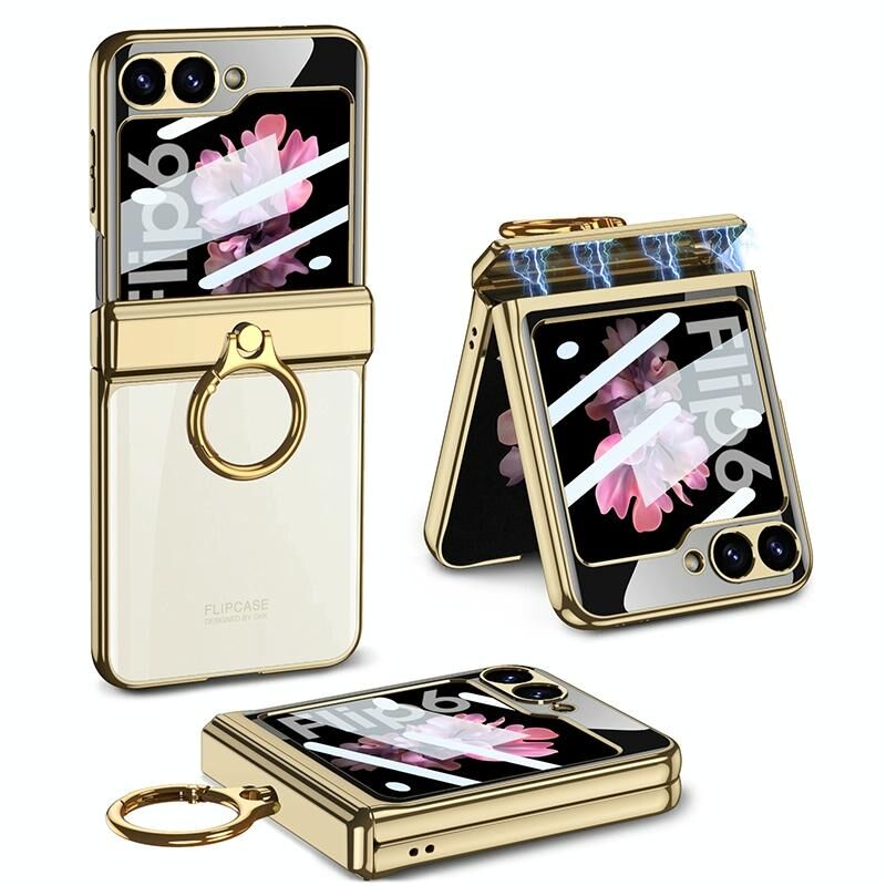 Θήκη τηλεφώνου GKK με ενσωματωμένο μαγνήτη, περιστρεφόμενη, αναδιπλούμενη, τύπου Phantom για Samsung Galaxy Z Flip6 με δακτύλιο στήριξης (Μωβ) (GKK)