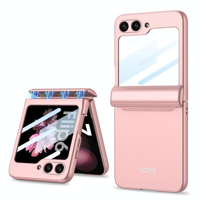 Για Samsung Galaxy Z Flip6 GKK Ενσωματωμένη μαγνητική θήκη τηλεφώνου πλήρους κάλυψης (ροζ) (GKK)