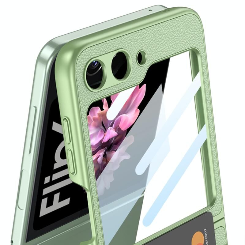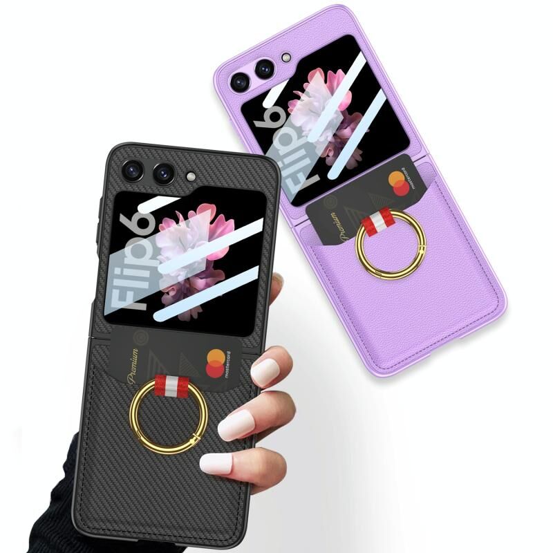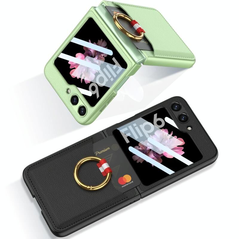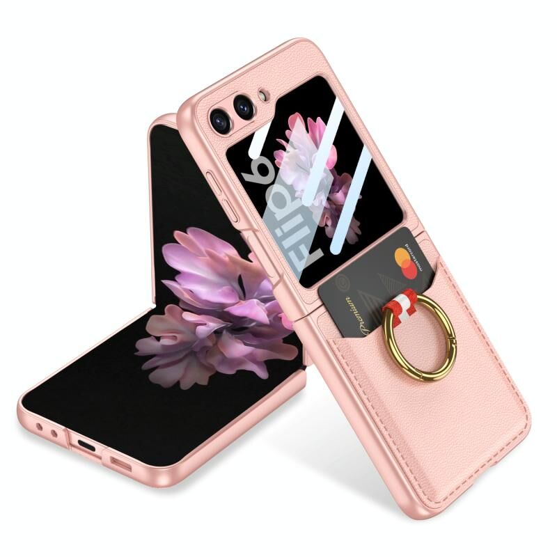 Για το Samsung Galaxy Z Flip6 GKK Ενσωματωμένο Ultra-thin δερμάτινη θήκη καρτών υποδοχές τηλέφωνο με θήκη δαχτυλίδι (ροζ) (GKK)