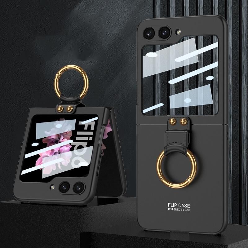 Για το Samsung Galaxy Z Flip6 GKK Ενσωματωμένη θήκη τηλεφώνου Ultra-thin PC Full Coverage με θήκη δαχτυλιδιού (μαύρο) (GKK)