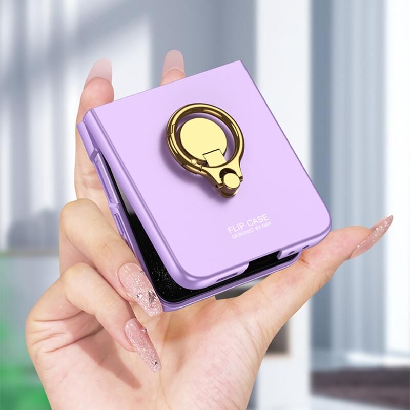 Για το Samsung Galaxy Z Flip6 GKK Ενσωματωμένη θήκη τηλεφώνου PC θήκης δακτυλίου εξαιρετικά λεπτού τριαξονικού δακτυλίου (ροζ) (GKK)