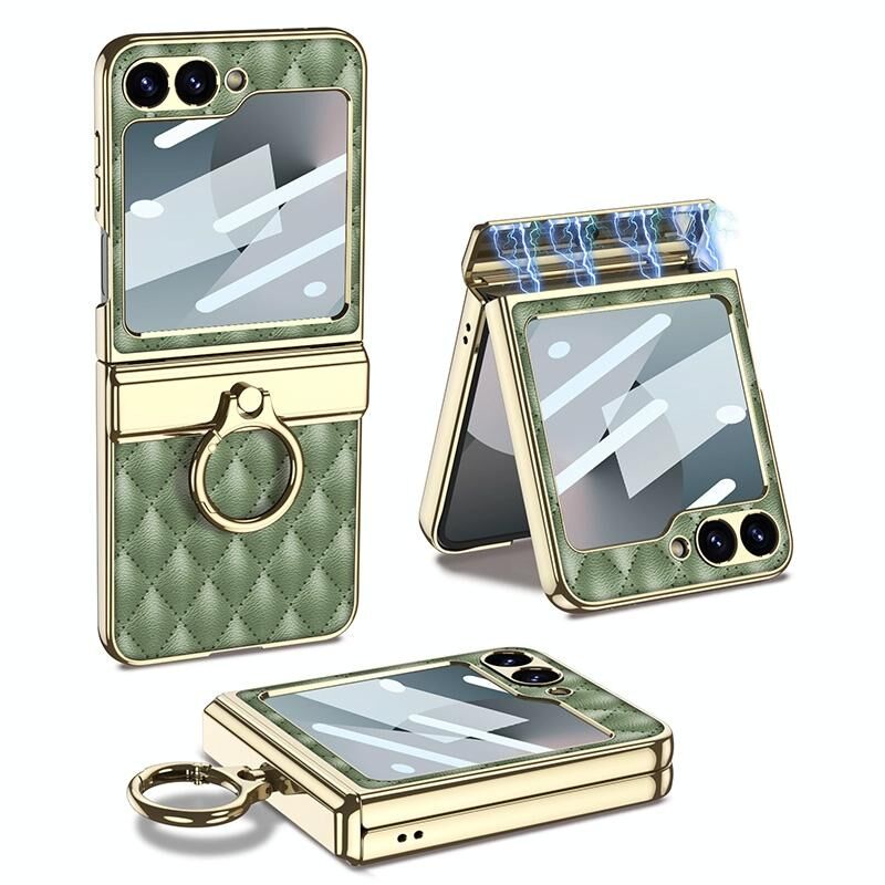 Για Samsung Galaxy Z Flip6 GKK Rhombus μοτίβο ενσωματωμένο Electroplated δέρμα τηλέφωνο υπόθεση με δαχτυλίδι (πράσινο) (GKK)