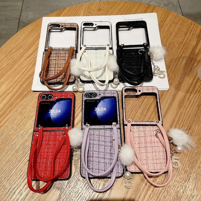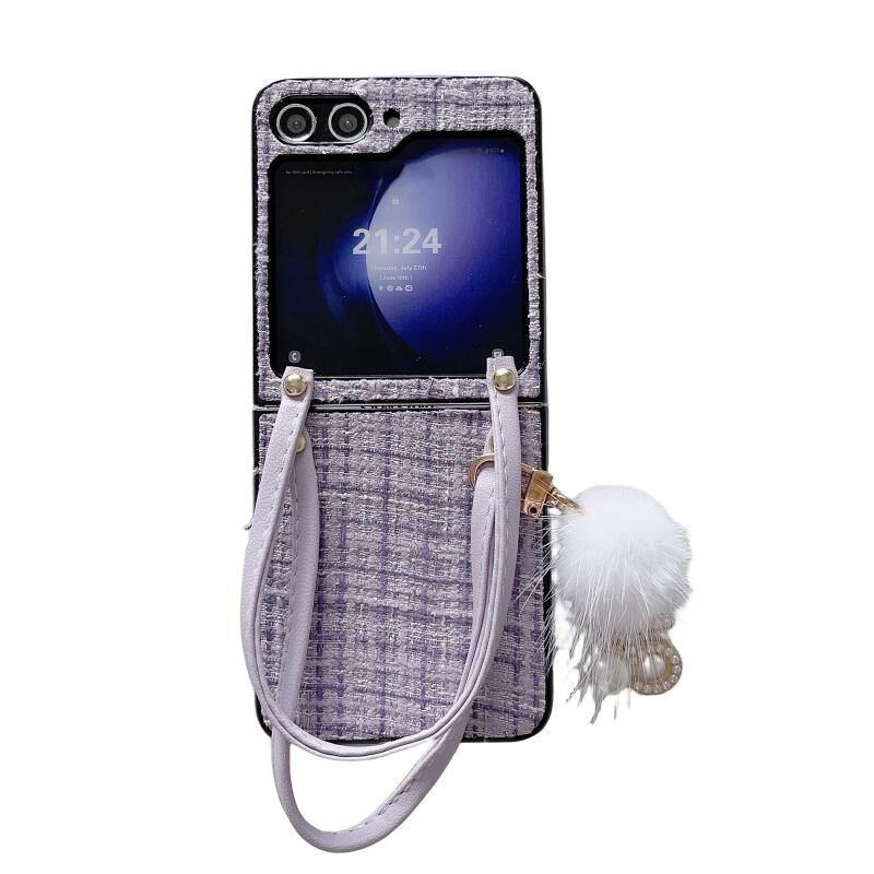 Για Samsung Galaxy Z Flip6 τσάντα Design βελούδινη μπάλα καρό ύφασμα PC υπόθεση τηλεφώνου (μωβ)