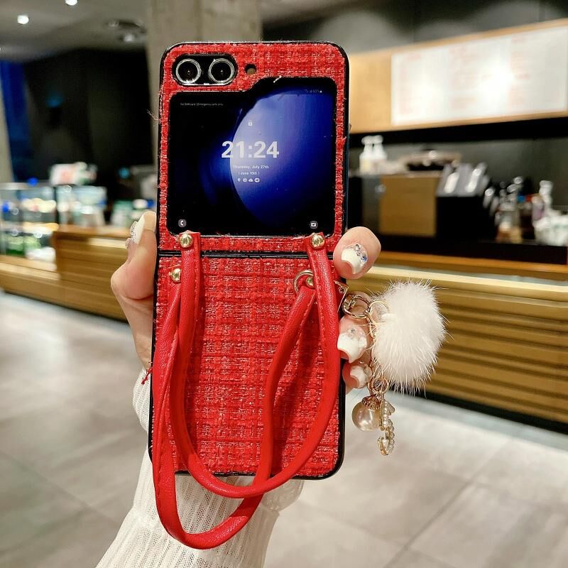 Για Samsung Galaxy Z Flip6 τσάντα Design βελούδινη μπάλα καρό ύφασμα PC υπόθεση τηλεφώνου (κόκκινο)