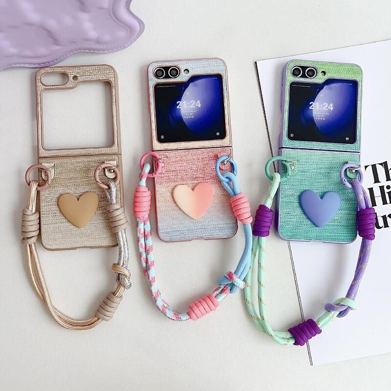 Για Samsung Galaxy Z Flip6 ψευδαισθησία χρώμα δέρμα υφή PC υπόθεση τηλεφώνου με χρώμα λουράκι (πράσινο)