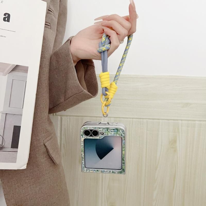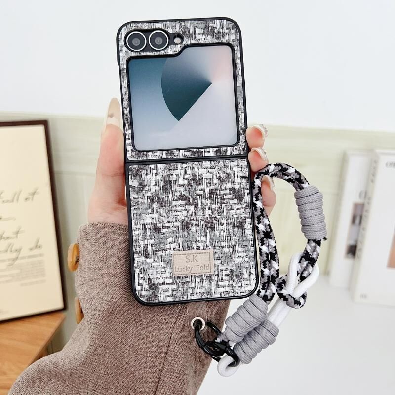 Για το Samsung Galaxy Z Flip6 Illusory χρώμα ύφανση Υφή τηλέφωνο υπόθεση με λουράκι χρώμα (μαύρο)