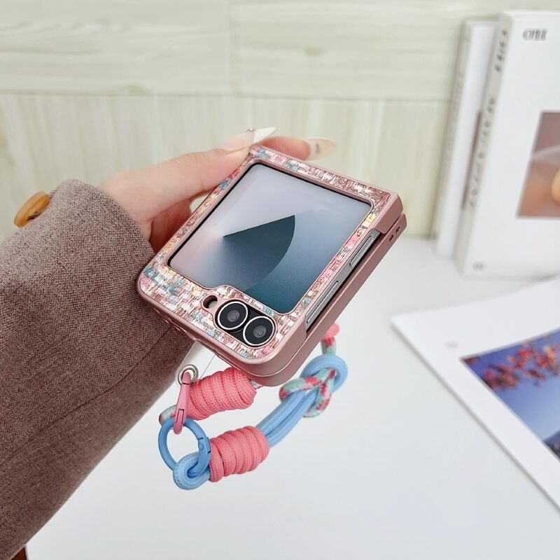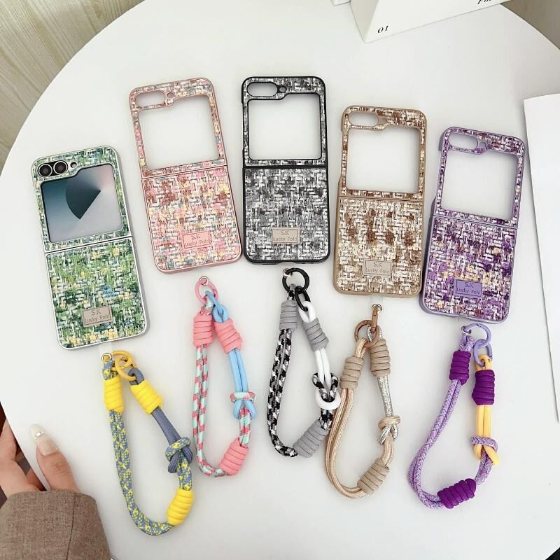 Για Samsung Galaxy Z Flip6 ψευδαισθησία χρώμα ύφανση υφή τηλέφωνο υπόθεση με λουράκι χρώμα (πράσινο)