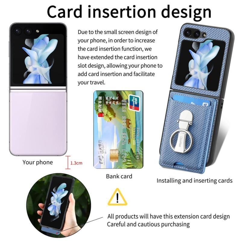 For Samsung Galaxy Z Flip6 JUNSUNMAY Carbon Fiber Leather Skin PC Folding Phone Case with Phone Ring(Black) (JUNSUNMAY)