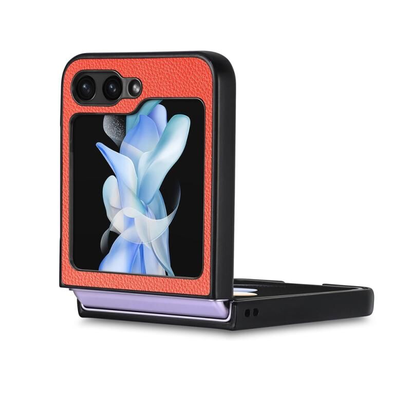 For Samsung Galaxy Z Flip6 JUNSUNMAY Lichee Texture Leather Skin PC Folding Phone Case(Green) (JUNSUNMAY)