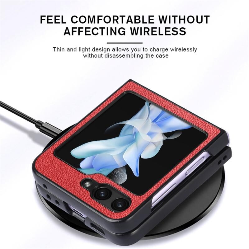 For Samsung Galaxy Z Flip6 JUNSUNMAY Lichee Texture Leather Skin PC Folding Phone Case(Khaki) (JUNSUNMAY)