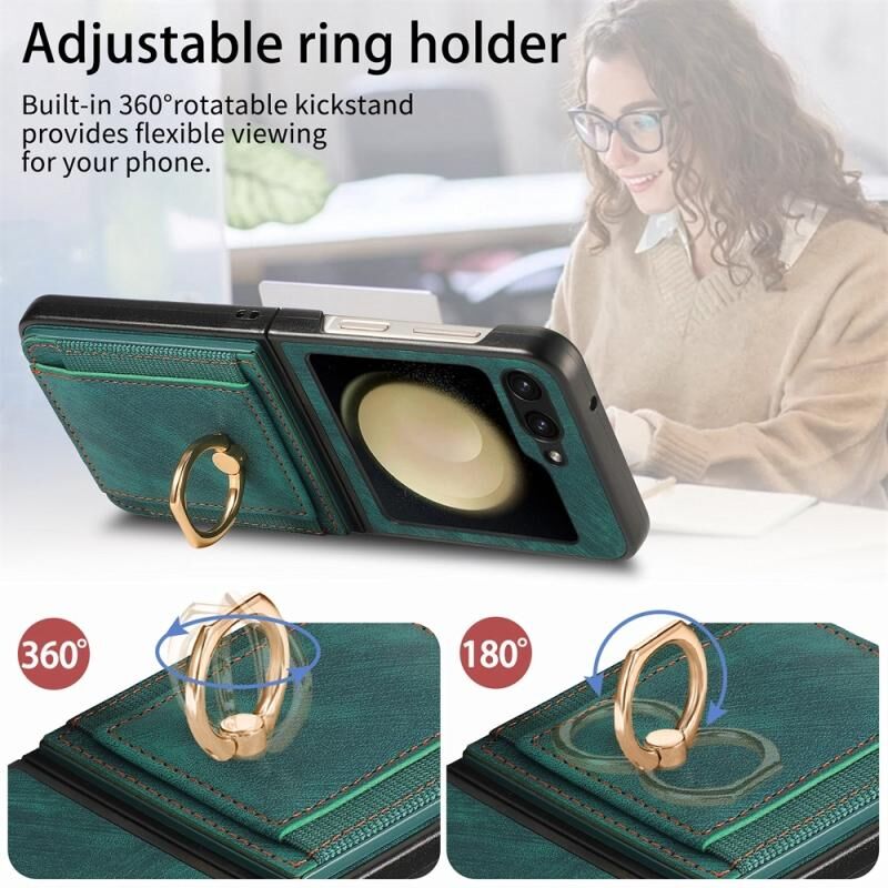 For Samsung Galaxy Z Flip6 JUNSUNMAY Retro Leather Skin PC Folding Phone Case with Phone Ring(Blue) (JUNSUNMAY)