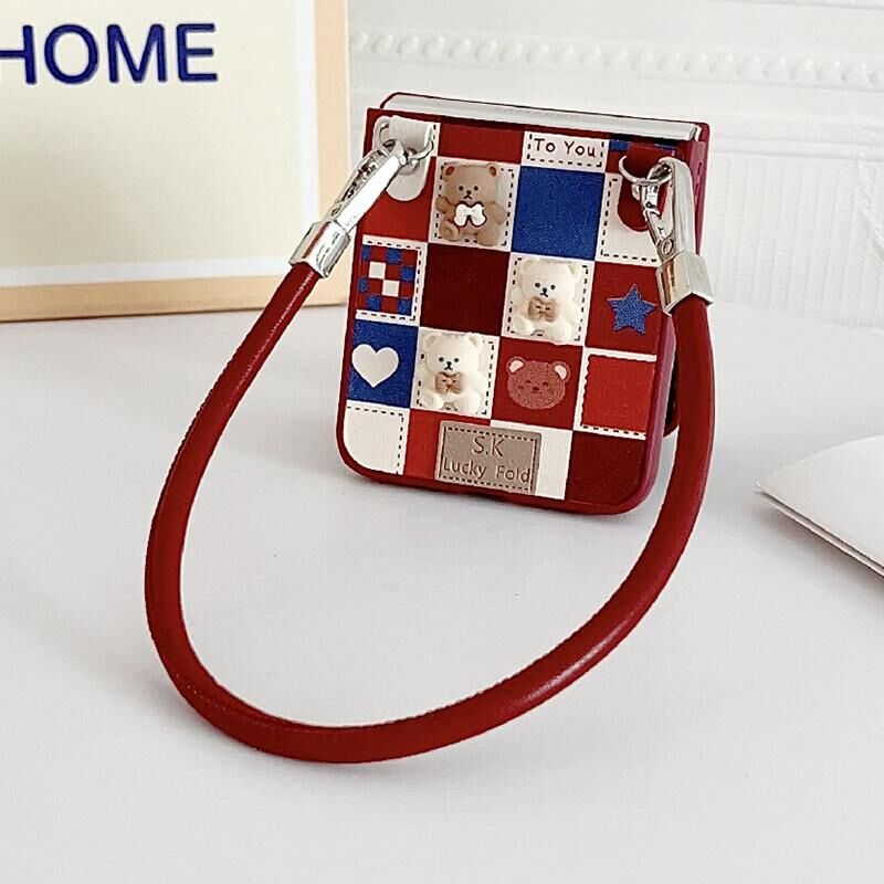 Θήκη κινητού Samsung Galaxy Z Flip6 με σχέδιο Λαττικού Μικρού Αρκούδου, πλήρης κάλυψη, με λουρί καρπού (Κόκκινο)