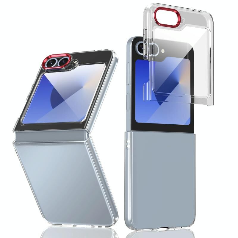 Για το Samsung Galaxy Z Flip6 lce Folding Series Integrated Clear PC Phone Case(Red)