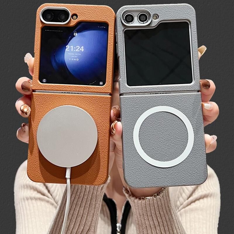Θήκη τηλεφώνου Samsung Galaxy Z Flip6 με δερμάτινη υφή, σχεδιασμό MagSafe και πλήρη κάλυψη (Μπλε)