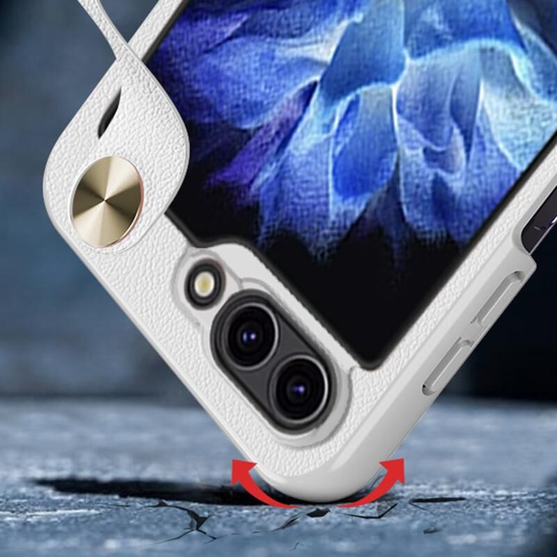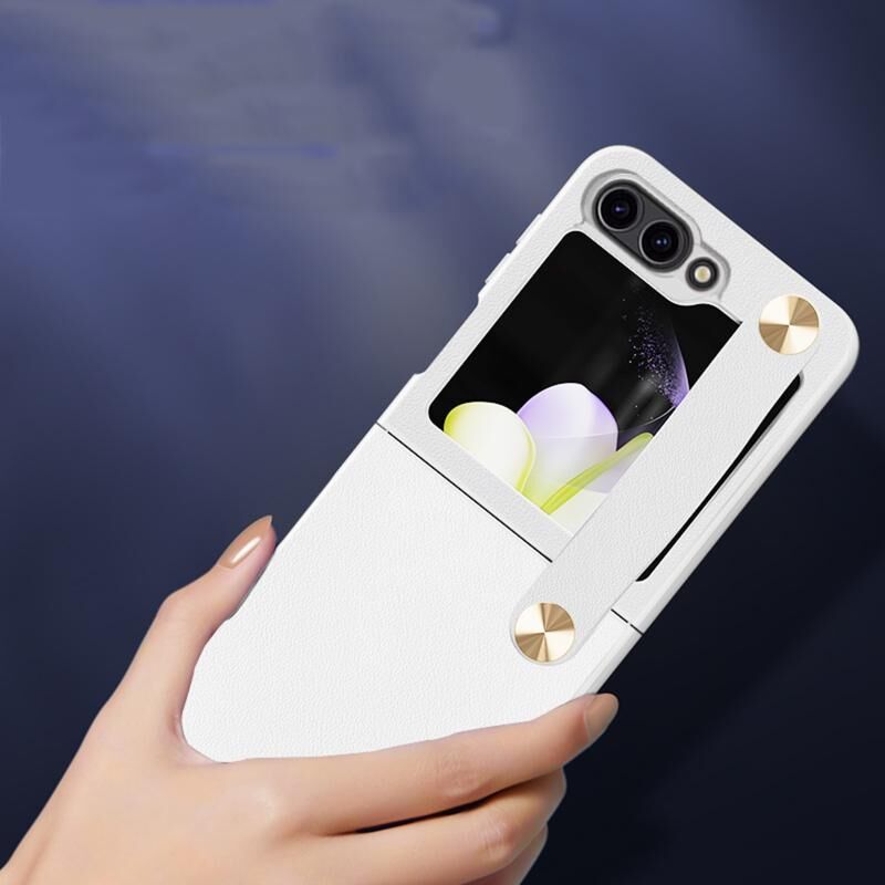 Για το Samsung Galaxy Z Flip6 Δερμάτινη θήκη τηλεφώνου Ultra-thin PC Wristband Full Coverage (μωβ)
