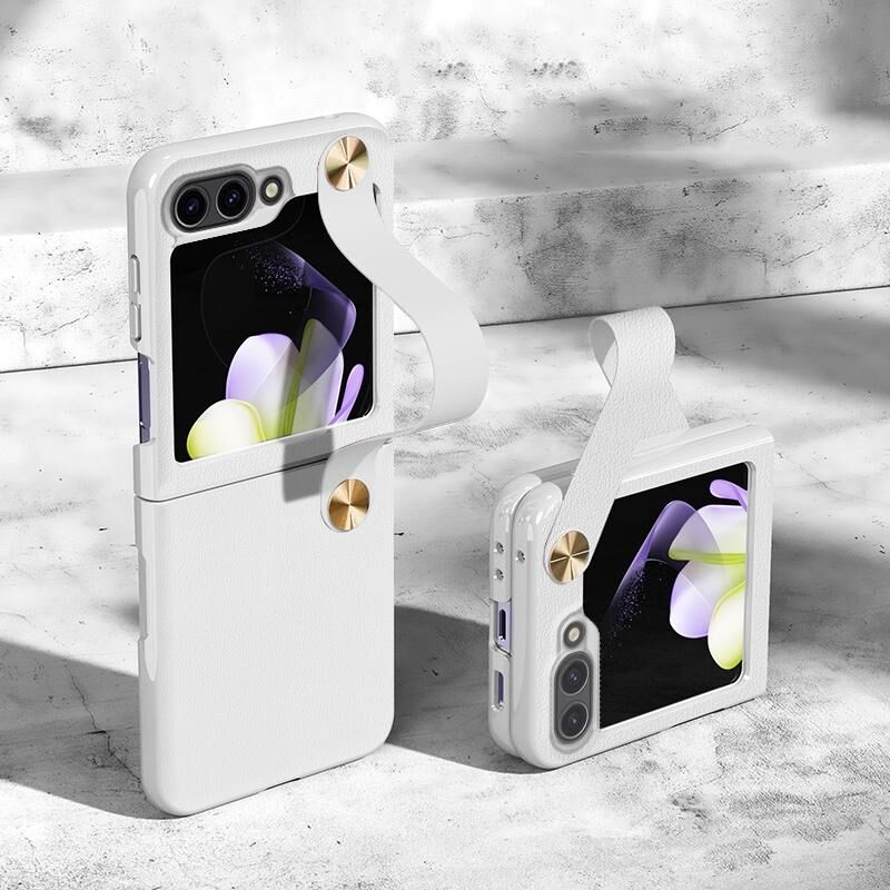 Για το Samsung Galaxy Z Flip6 Δερμάτινη θήκη τηλεφώνου Ultra-thin PC Wristband Full Coverage (Λευκό)
