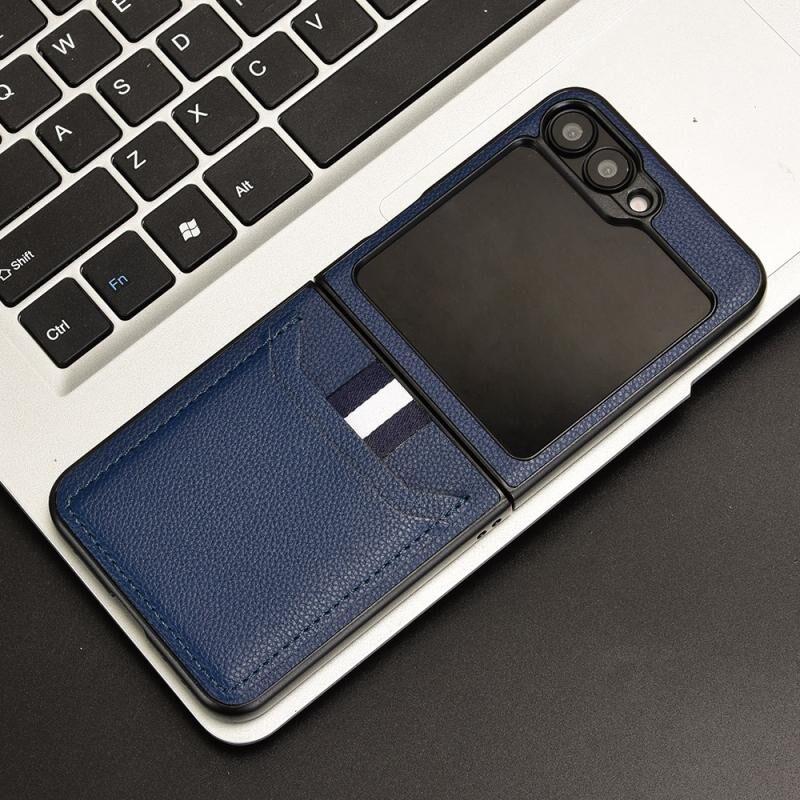 For Samsung Galaxy Z Flip6 Litchi Texture Card Slots Back Cover Phone Case(Blue)