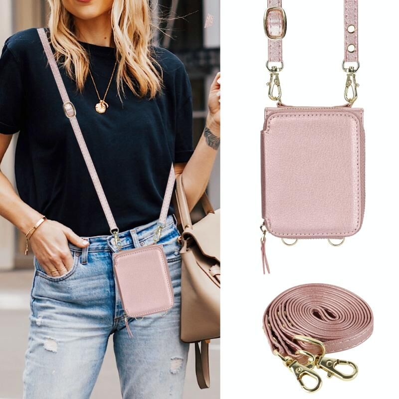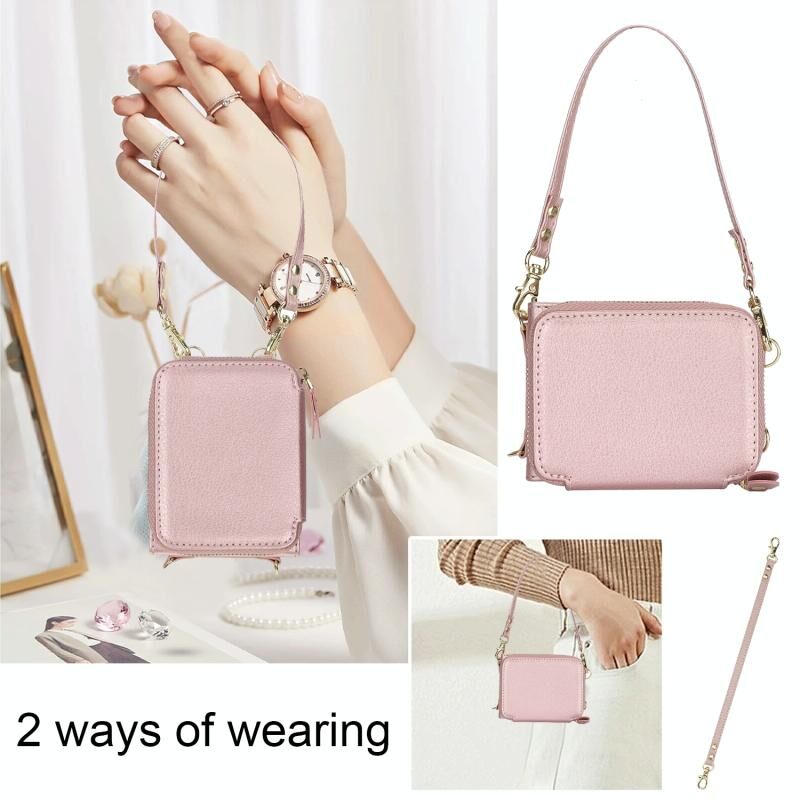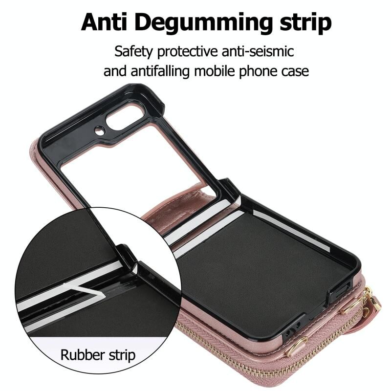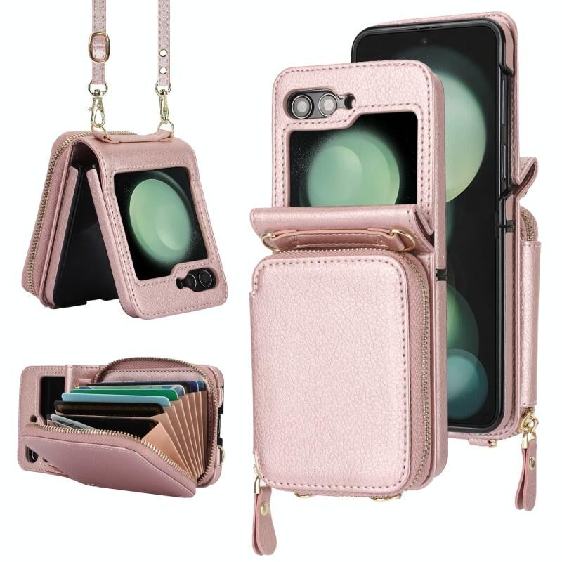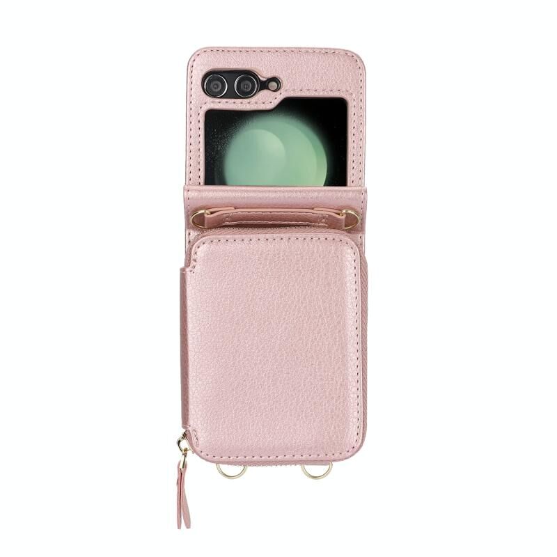 Για Samsung Galaxy Z Flip6 Μακρύ και κοντό κορδόνι φερμουάρ υποδοχή κάρτας πτυσσόμενη θήκη τηλεφώνου (ροζ)