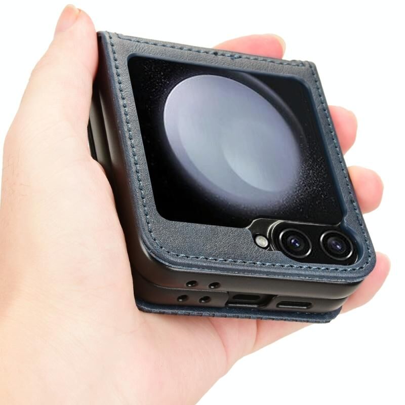 Για Samsung Galaxy Z Flip6 μαγνητική πόρπη ρετρό υφή δερμάτινη θήκη τηλεφώνου (μπλε)