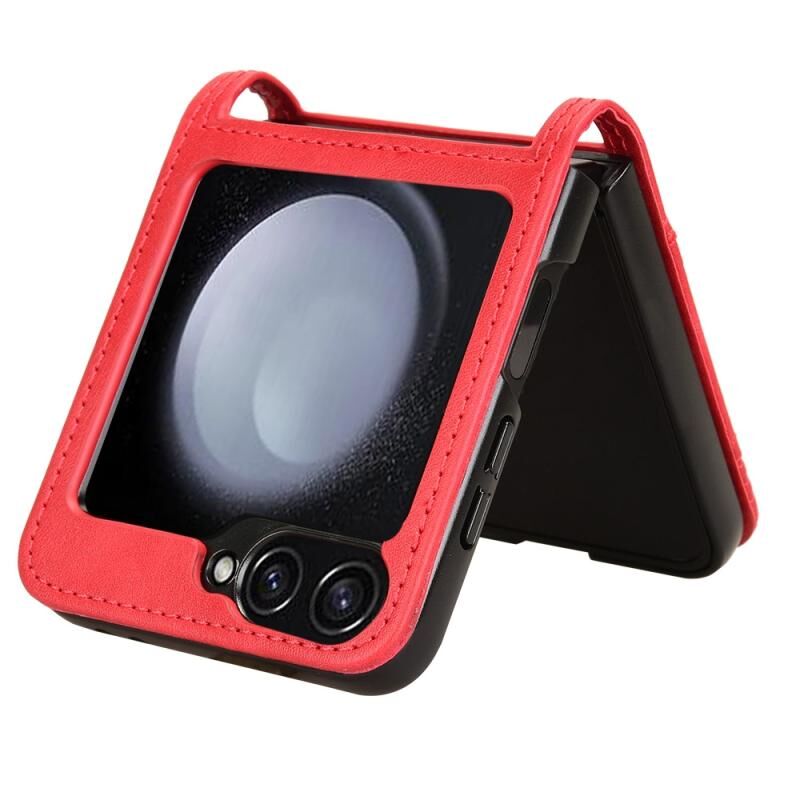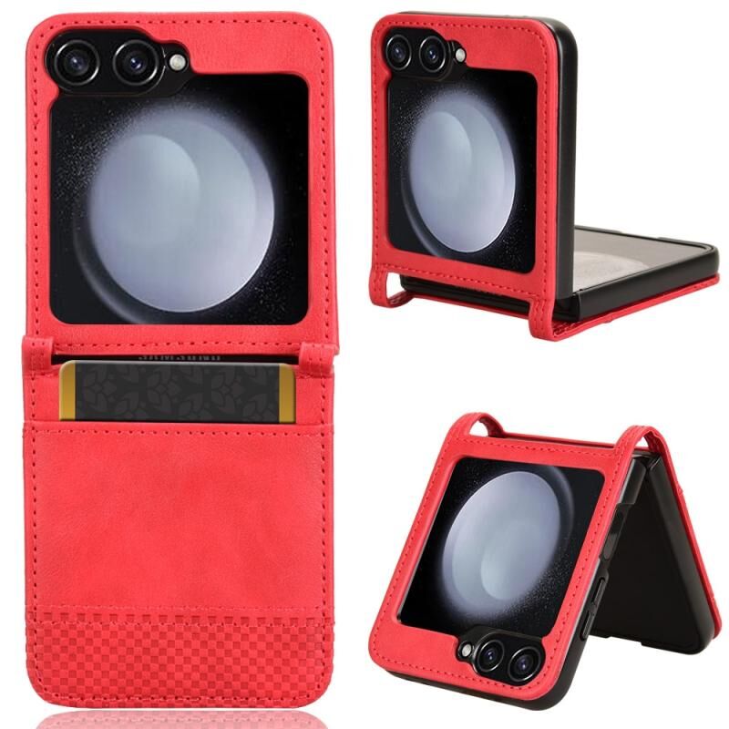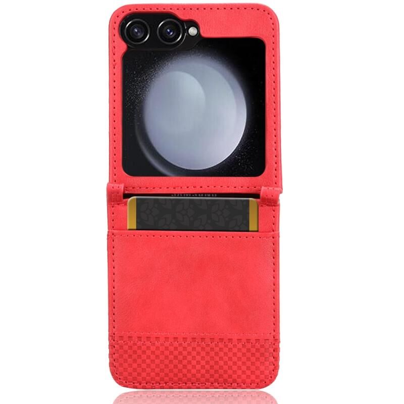 Για Samsung Galaxy Z Flip6 μαγνητική πόρπη ρετρό υφή δερμάτινη θήκη τηλεφώνου (κόκκινο)