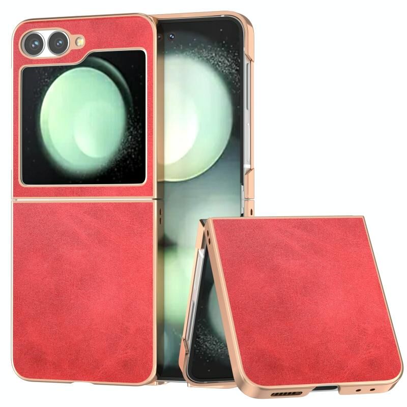 Για Samsung Galaxy Z Flip6 Nano ηλεκτρολυτική διπλού χρώματος δέρμα αγελάδας υφή Προστατευτική θήκη τηλεφώνου (κόκκινο)