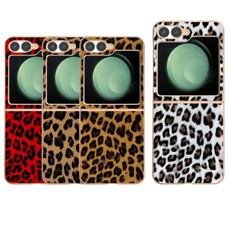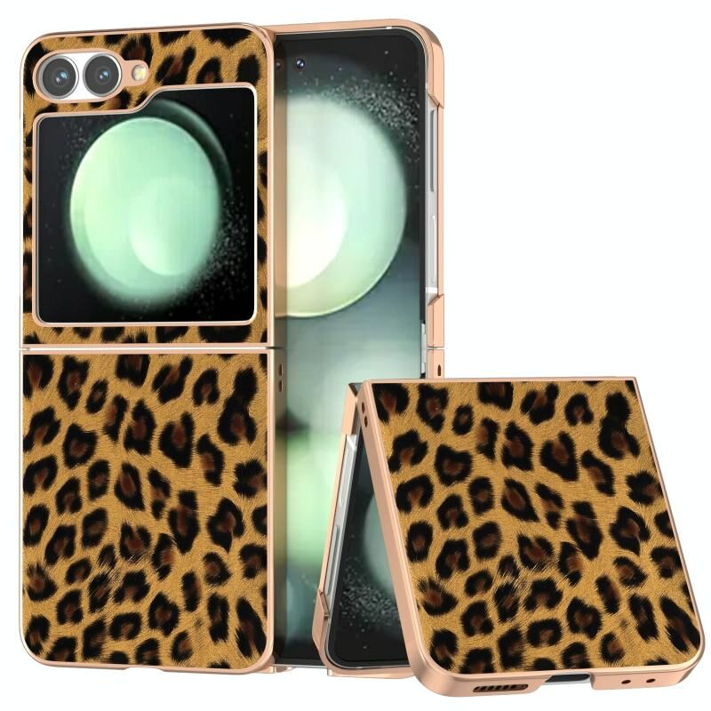 Για Samsung Galaxy Z Flip6 Nano επιμετάλλωση Leopard Print υπόθεση τηλεφώνου (καφέ)