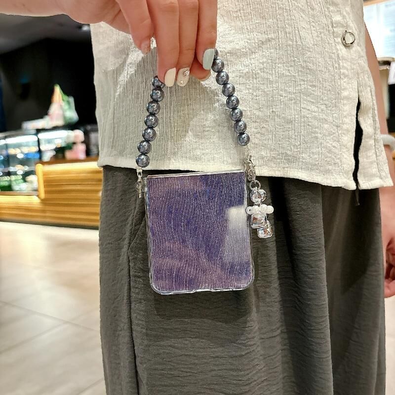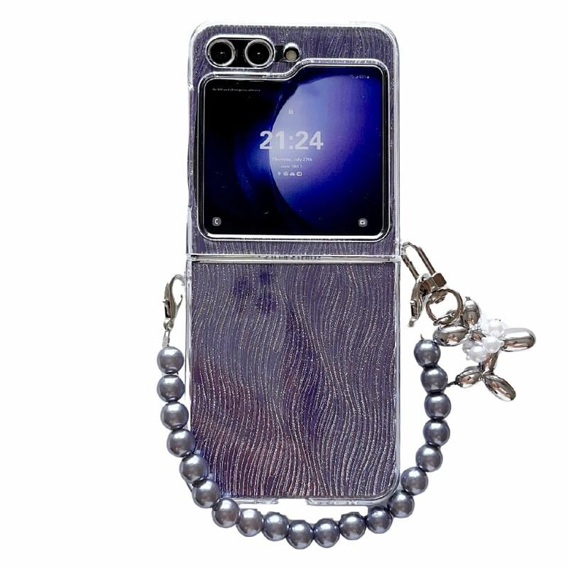 Για Samsung Galaxy Z Flip6 PC Side Buckle + κυματισμούς Glitter χαρτί πλήρους κάλυψης τηλέφωνο υπόθεση με βραχιόλι (μωβ)