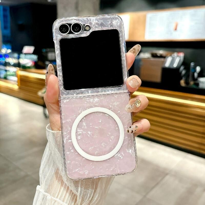 For Samsung Galaxy Z Flip6 Pearlescent Shell Texture MagSafe Phone Case(Pink)