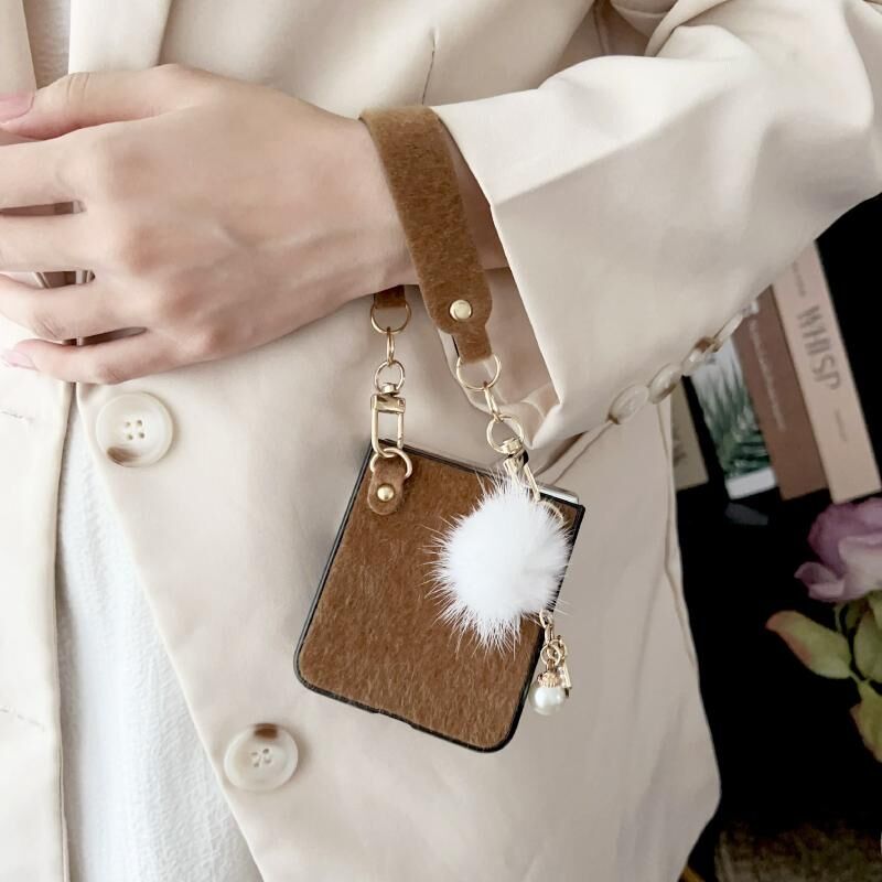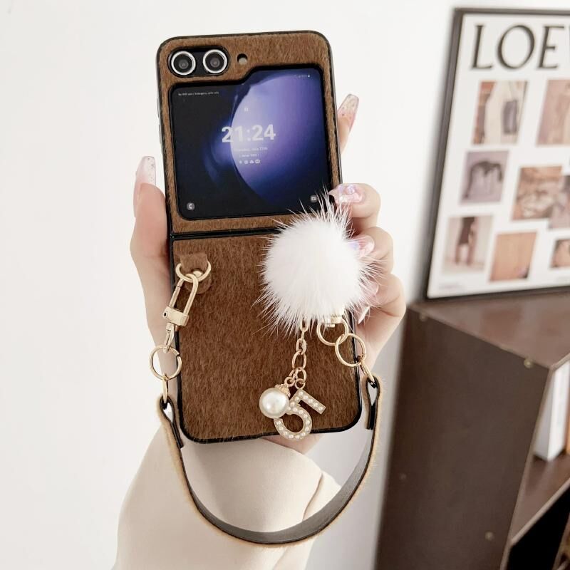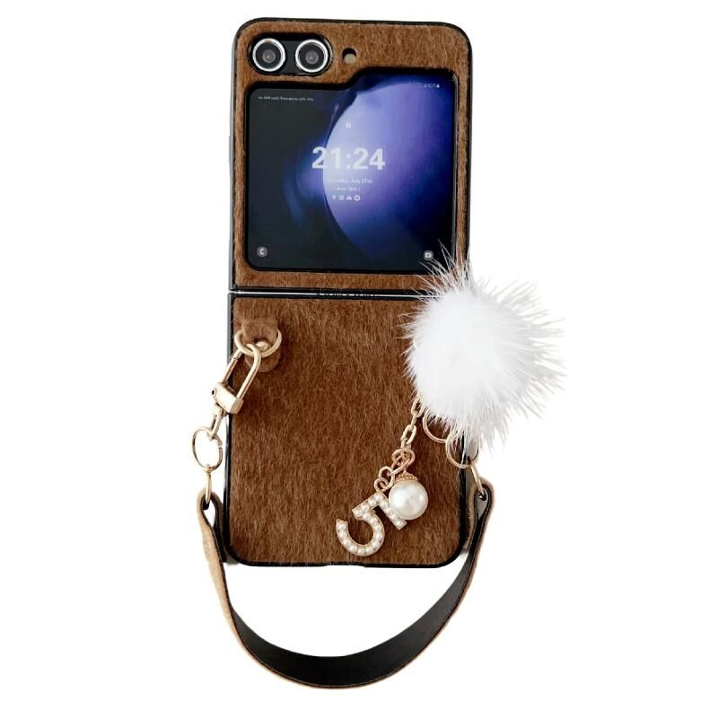 Για Samsung Galaxy Z Flip6 Plush Full Coverage θήκη τηλεφώνου με λουράκι (Καφέ)