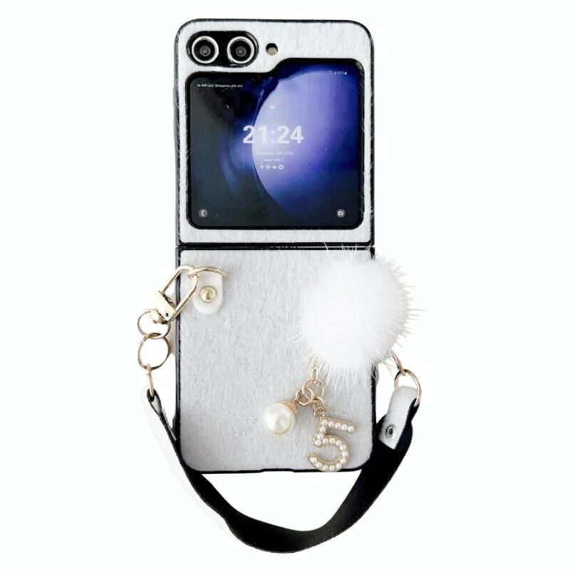 Για Samsung Galaxy Z Flip6 Plush Full Coverage θήκη τηλεφώνου με λουράκι (Λευκό)