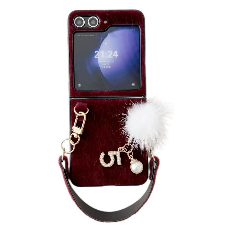 Για Samsung Galaxy Z Flip6 Plush Full Coverage θήκη τηλεφώνου με λουράκι (κόκκινο κρασί)