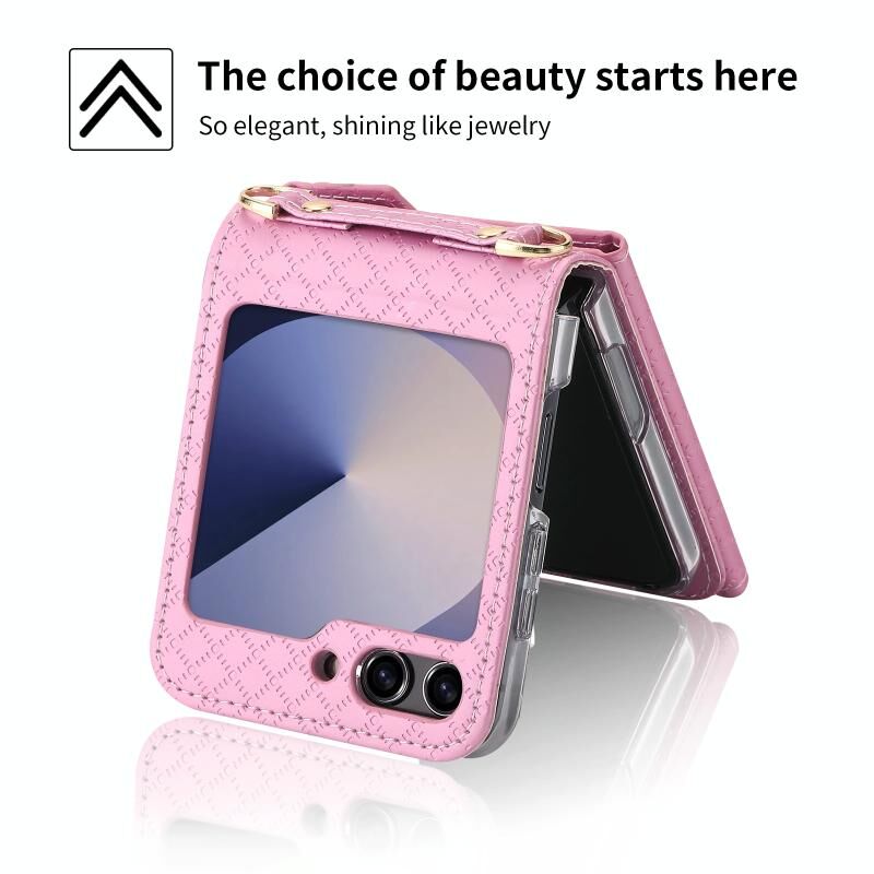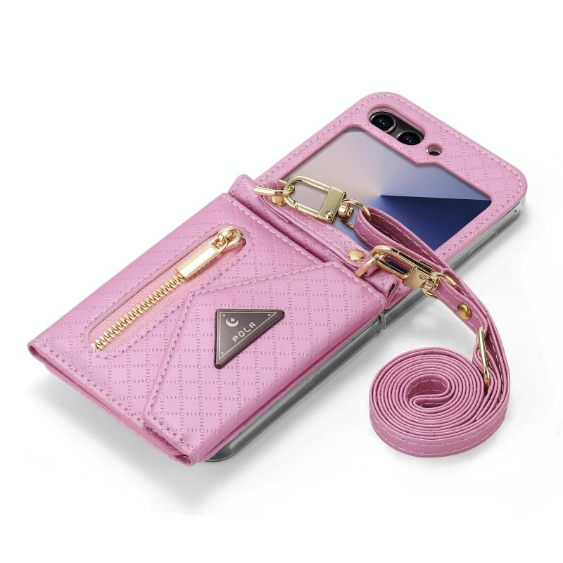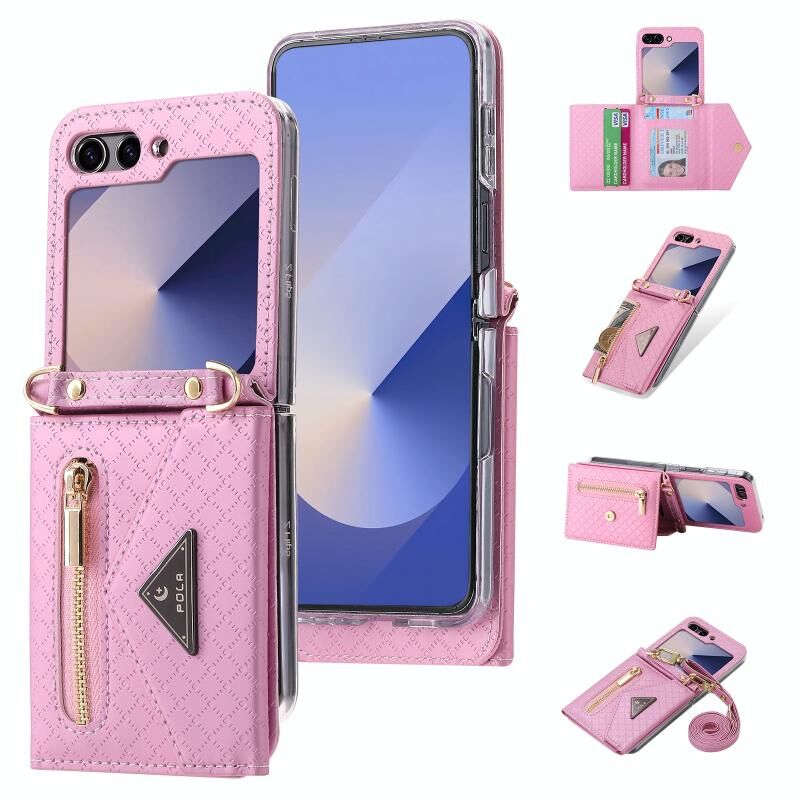 Για Samsung Galaxy Z Flip6 POLA Grid υφή πολλαπλών καρτών υποδοχές φερμουάρ πορτοφόλι υπόθεση τηλεφώνου (ροζ) (POLA)